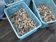 約50分のクルーズもいよいよ終了。かなり寒く感じましたが、いい景色を眺められて大変満足しました。この九十九島にはクルーズの他に遊覧船(こちらは1200円)も出ていてたくさんの人で賑わいます。ちょっとした観光ならこっちの方がお手ごろかもしれません。また、この九十九島では冬の名物として牡蠣が有名。陸で牡蠣を選別している地元の人が言うにはここの牡蠣は真冬でなくて秋口からがおいしくなるようです。広島の牡蠣のなかには2年ものもあるそうですが、ここでは1年間で育ち、比較的小さいんだそうです。 l時間の関係で食べることはできませんでしたが、今開催中にチャンスがあれば食べて見たいと思います。