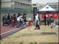 今回はたくさんの人がこのイベントに参加していました。ブリジストンが協賛していて簡単な保険料さえ払えば誰でもバンクで走れました。 今日はピストレーサーではなくロードバイクでの参加です。小さい子供たちの為の自転車教室とかもやっていて大盛況です。 ここにはプロのロードレーサーでもある飯島選手とか田代選手も来ていていろいろ指導しておりました。