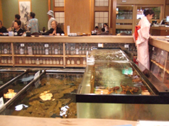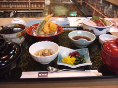 その後は小倉に戻って昼食を取ることにしました。今日行って来たのは料亭、稚加榮(ちかえ)。夜の食事はとても高くつきますが、昼はサラリーマンや主婦達のために昼食もやっています。値段はリーズナブルで内容もよく人気があります。店内には生簀があり、それを囲んで食事をします。 小倉を訪れる機会があったら是非寄ってみてください。お勧めのお店です。
