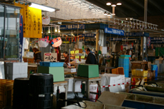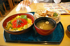 その後は唐戸まで船で戻ってお昼ごはんを取ることにしました。ここは以前にも紹介しましたが、いろいろな海産物が集まる市場です。土日にはたくさんの観光客が集まってくる人気ポイントとなっています。今日はこの近くにあるお店に入って食事にすることに。関門海峡を行き来する大きな船をみながらの食事はなかなかいいものです。ちょっとした観光を楽しむのにはとてもいいコースです。