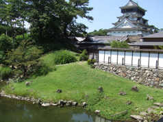 この小倉城は慶長7年(1602年)細川忠興(ただおき)が築城した城です。天守閣の外見は五層六階で、五層目が下の四層目よりも大きく、当時は「唐作り(南蛮風)」と呼ばれて全国唯一の珍しいものだったようです。 しかし、慶応2年(1866年)に第二次長州征伐で小笠原藩(小倉)と長州藩との戦闘の際に小笠原藩(小倉)は長州藩の攻勢の前に小倉城からの撤退を決め、自らの手で火を放ち建物ごと焼き払ってしまいました。 l現在の城は昭和34年に在りし日の城を再現したものです。 lまた、この城の石垣は切石(切り出して加工する)を使わず、城の東にある足立山というところからとってきた自然石が大部分で、堂々とした風格を見せております。 これは当時の城主、細川忠興の自慢(これだけの天然石を使えるだけの力がある)の一つだったといわれています。