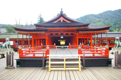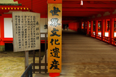 ・さて、せっかく訪れたので神社の中に入ってみましょう。入り口で入場料(800円)を払ってさっそく中に。その前にちょっと厳島神社について調べてみました。 ・この厳島神社は推古元年(593)厳島に住む豪族佐伯鞍職によって創建されたと伝えられていますが、現在のような形にしたのは平安時代の末期に平清盛によって造られたそうです。約1400年の歴史を誇ります。この厳島神社は日本三景(松島・天橋立・厳島)にも数えられる上に、1996年に世界遺産に登録されました。さすが世界遺産と言わんばかりの美しい社殿です。