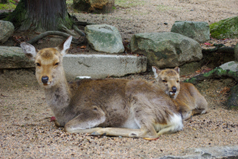 この宮島にも住んでいる方が一杯います。お土産屋さんやとか民宿をやっている方とかが多いそうですが、町自体しっとりと落ち着いている感じで本当にいい雰囲気が漂っています。しかも町を歩いているとたまに鹿たちに遭遇します。人なれしている鹿なので普通に横を通り過ぎても驚きません。動物と共存している町の生活を見ていると何だか不思議な感覚すら覚えます。