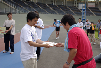 見事的中を果たした参加者には賞品がプレゼントされていました。 ・なお、バンク内で行われたタイムトライアル(1000mなど)でいいタイムを出した人にも賞品が出ました。 ・最後に参加者全員に参加賞が配られて無事に終了。とても楽しい一日となりました。