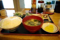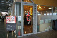 ここが市場の食堂『よし』です。ここは市場の関係者なども利用している食堂で朝早くから営業しています。 もちろん昼時は一般の人も加わり大変な混雑となります(今日は10分くらい待ちました)。さすが市場というだけあってメニューはかなり豊富です。 今回はその中から刺身盛り合わせ定食を頼みました。ご飯がどんぶり一杯に盛ってあってとても食べ応えがありました。この唐戸市場に来る際は是非ここに来てください。お勧めです!