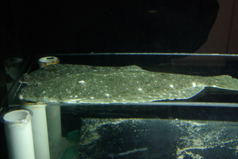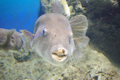 ここにはさらに驚く魚がいます。それは『カレイ』です。 普通カレイは海底の砂の上にいて、表面を砂の色と同じにして敵に見つからないようにしています。ですから、通常カレイの後ろ側は擬態する必要がないので白色になっていますが、ここにいるカレイは後ろ側も表面と同じ色なんです。 この海響館の説明によると、いわゆる突然変異でこうなったらしいんですが全国的にみてもとても珍しいとのことです。興味がある方は実際に見に行ってはどうでしょう。
